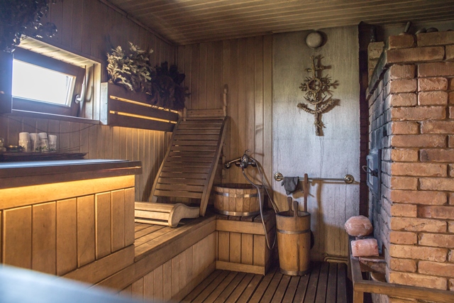 "White" smoke sauna (9m2) equipped according old authentic method. Sauna is located on the shore of the bay of Papes lake;